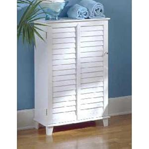 Decorative and stylish, this louvered towel safe is the perfect solution to maximize storage space in your bathroom or laundry room. The white louvered slats create a comfortable beach house atmosphere while easily concealing all your toiletries. This cabinet has two fixed shelves that provide a large amount of storage for your convenience. Features: 23.5" x 11.5" x 37" Tall Frost White Finish Louvered Doors 2 adjustable shelves inside... Read More...